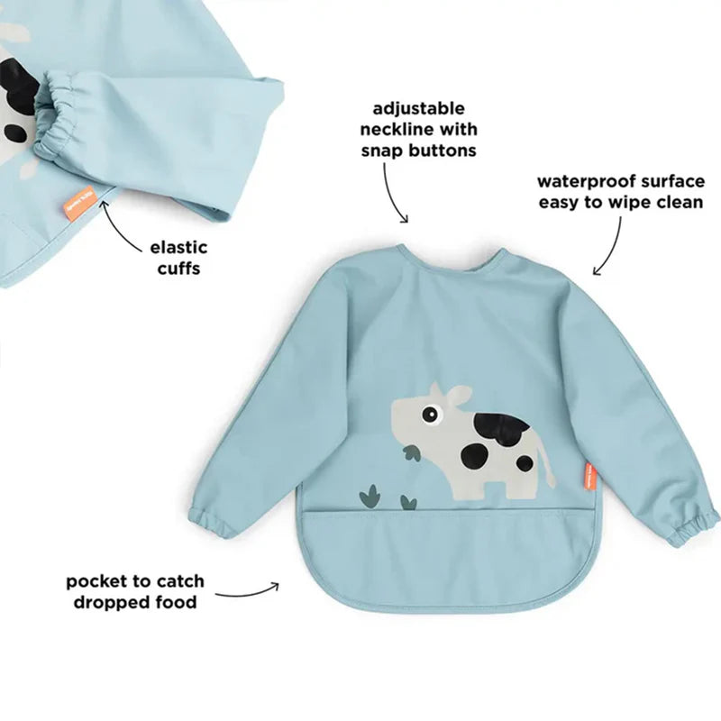 Babero grande con mangas y bolsillo Tiny Farm azul 6-18 meses