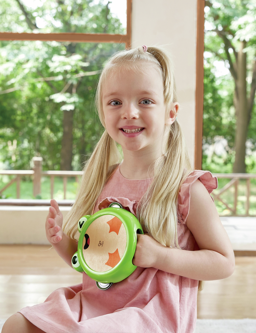 - CINCO INSTRUMENTOS PARA JUGAR: Este conjunto incluye una mariposa castañuela, una maraca abeja, una campana luciérnaga, un xilófono flor y una pandereta rana.