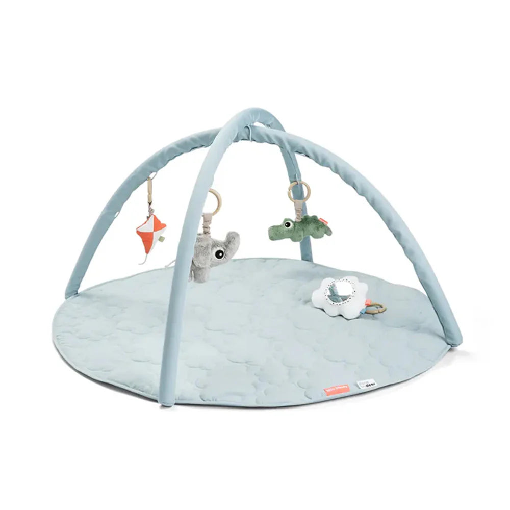 Los cuatro juguetes colgantes se pueden ajustar según la etapa de desarrollo de tu bebé o separar para jugar de forma independiente, perfectos para que los pequeños los descubran. La suave colchoneta acolchada, adornada con un adorable estampado de nubes y guata gruesa, garantiza un espacio acogedor y cómodo para jugar.