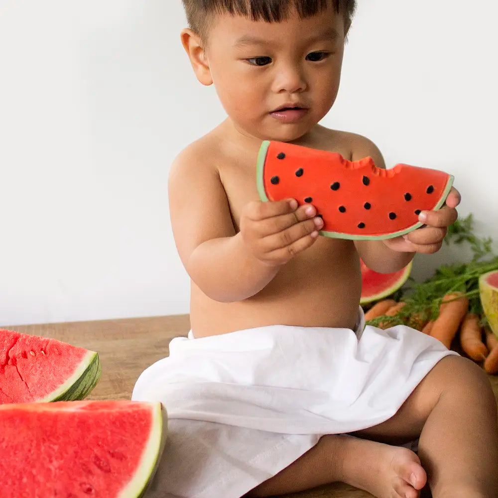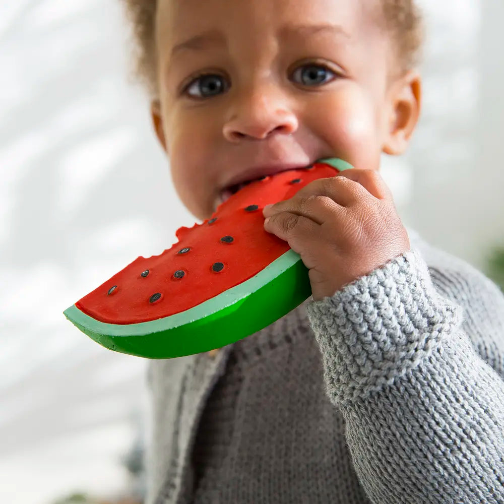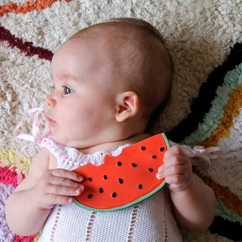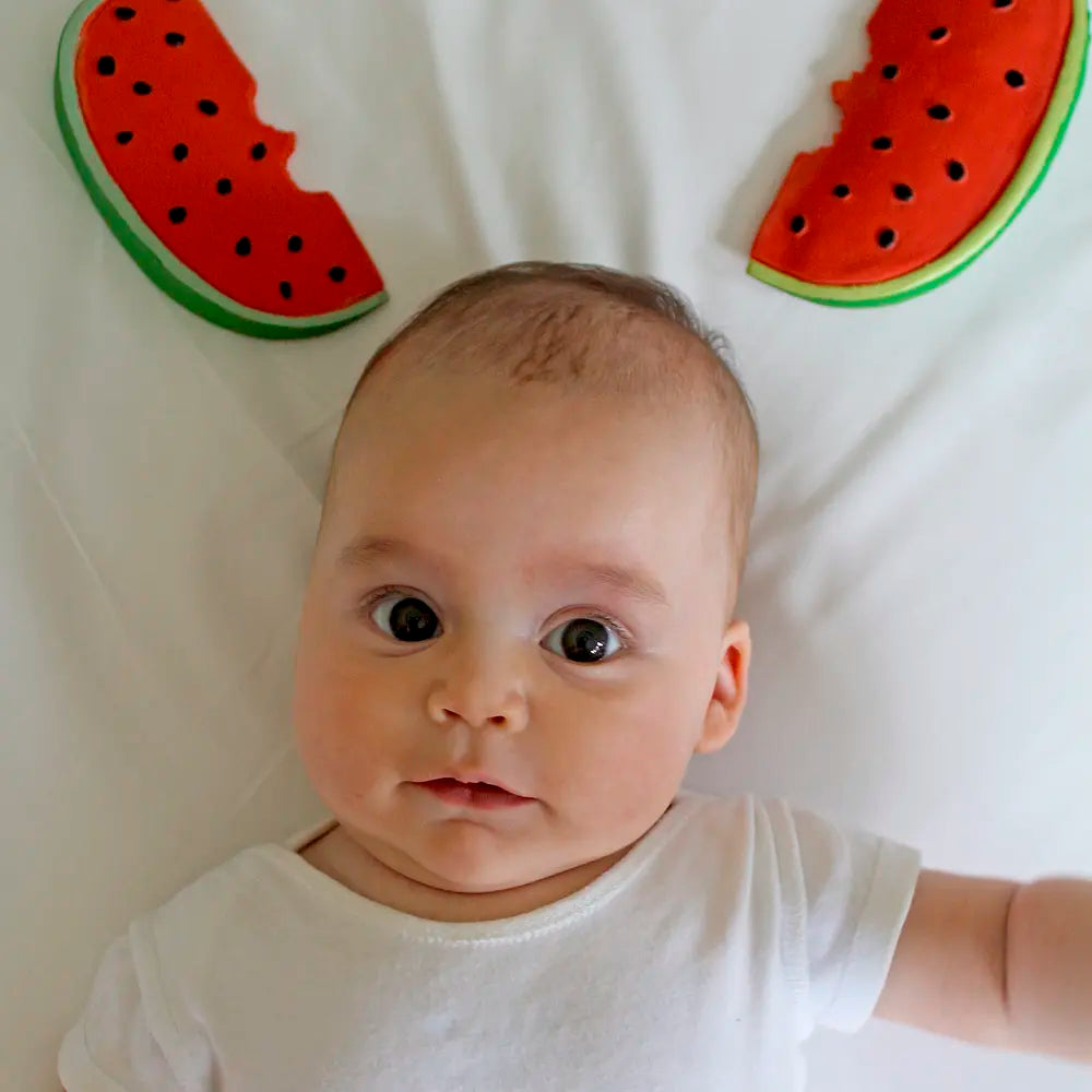 Este mordedor es perfecto para estimular el juego sensorial, para entretener a los niños y para aliviar las molestias de la dentición en las guaguas. Con una textura suave y un atractivo diseño, este mordedor es fácil de agarrar y de masticar. Fabricado y pintado a mano con pigmentos alimentarios, es biodegradable y ecológico.