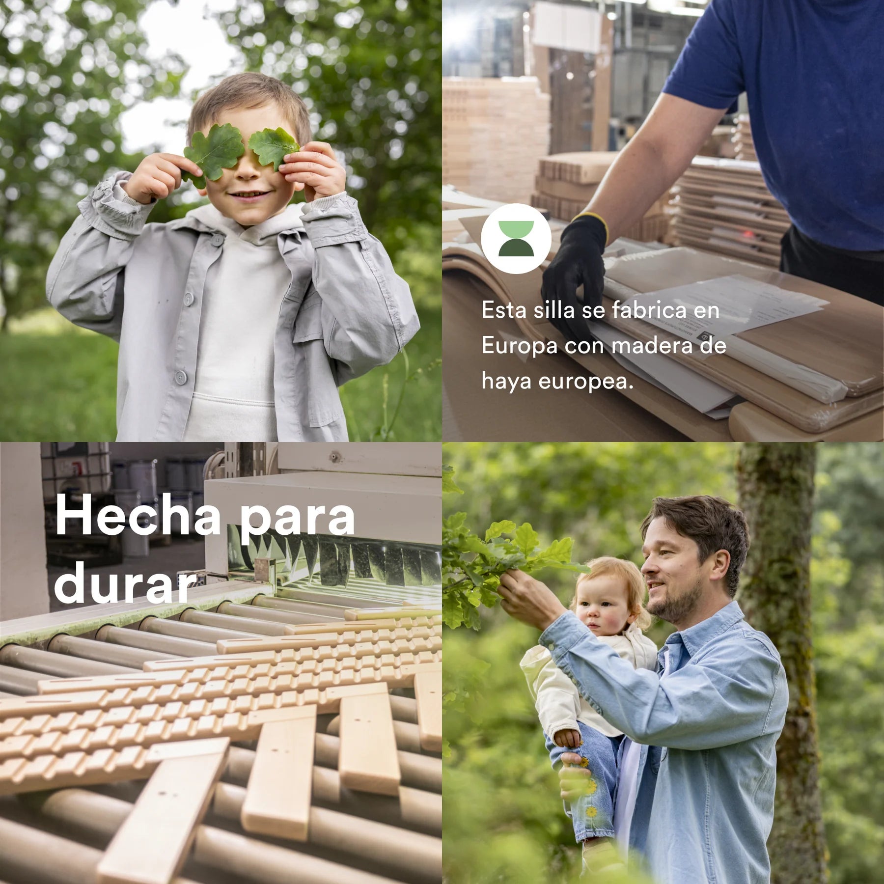 - Estructura sólida de madera de haya europea que puede soportar un adulto de hasta 110 kg.