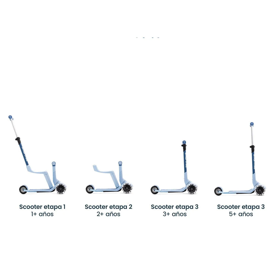 - Diseño multi-etapas: Transforma de paseador para los más pequeños a un scooter completo para niños mayores.